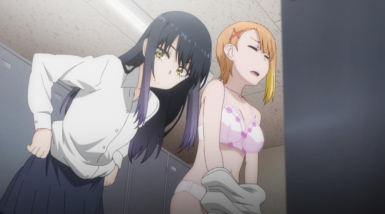 原作漫画だと「ロッカー開けてくれる?」のところは上着は脱いでるけどジャージの下は履いてるんだよね。ハナのパンツを見せようとして墓穴を掘ったね>アニメ版のスタッフ