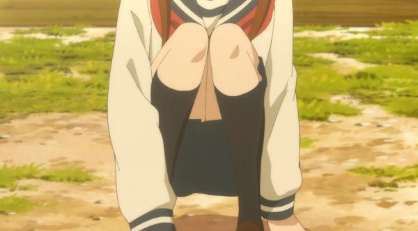 ちゃんと腿とふくらはぎでスカートを挟んでしゃがんでるから、両足をぴったり閉じてれば前からは見えない
